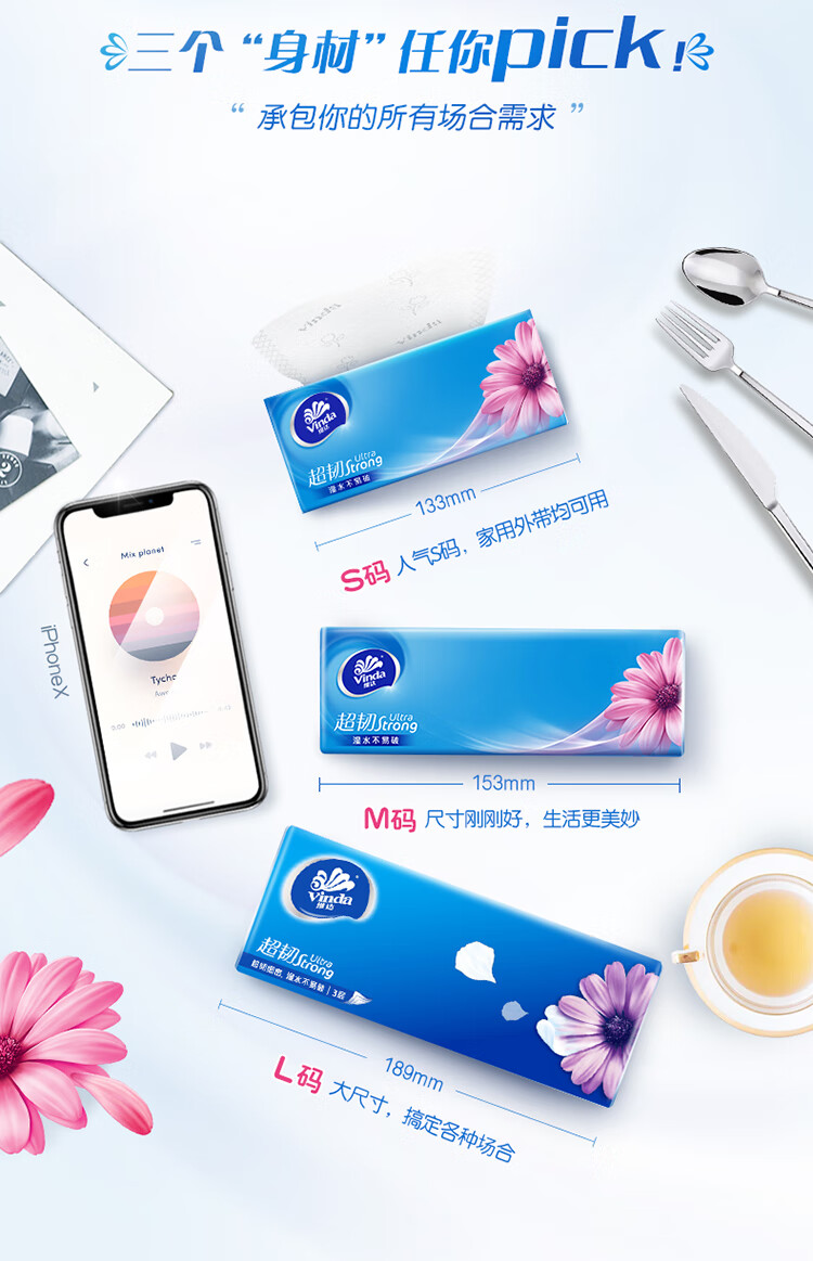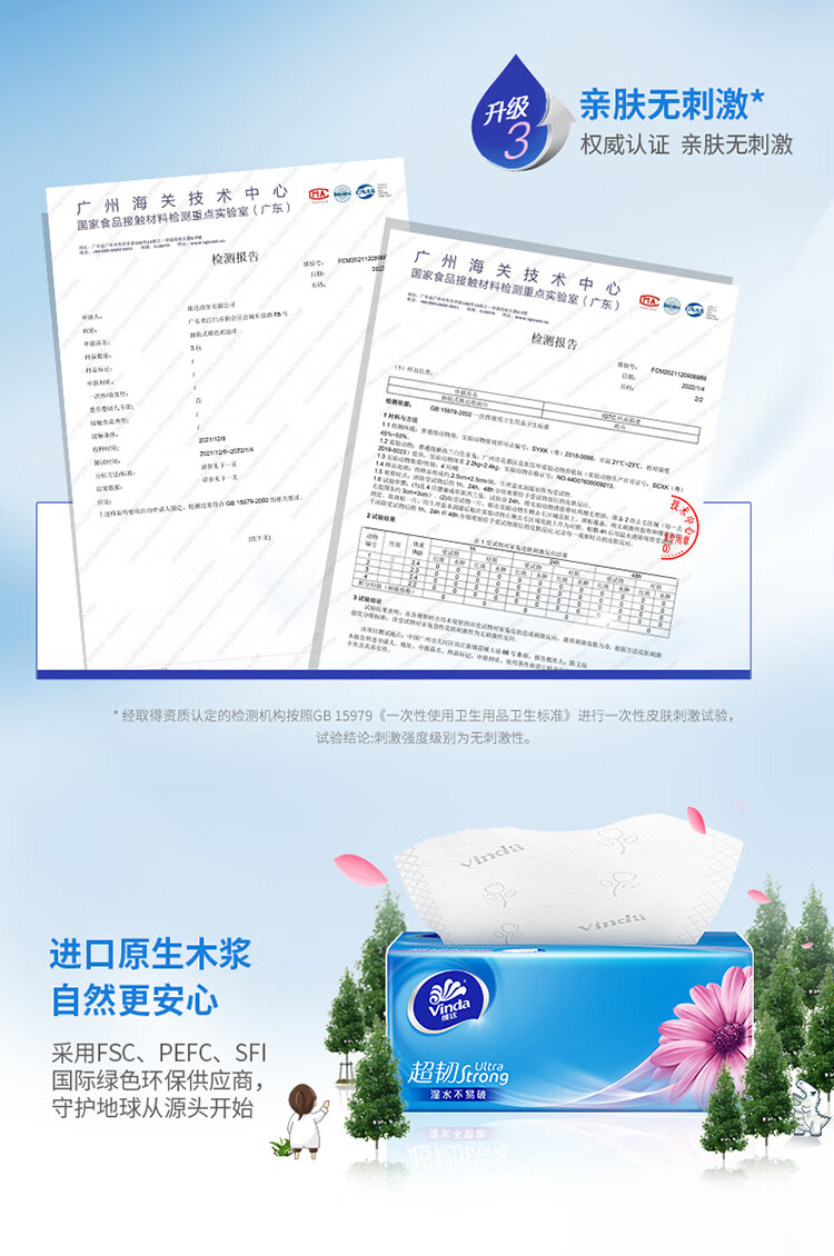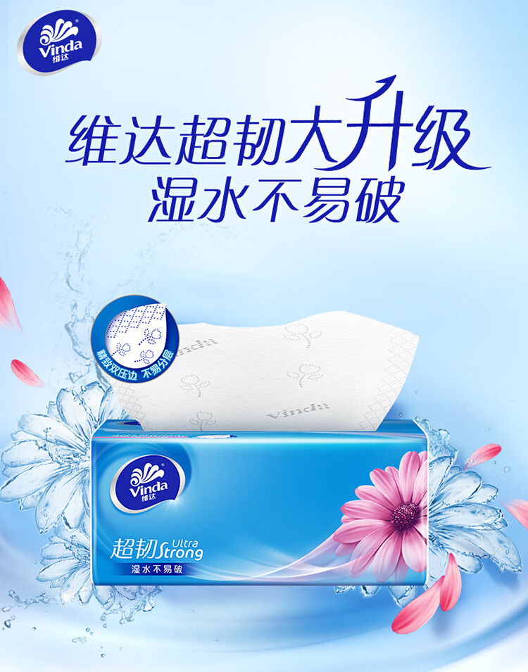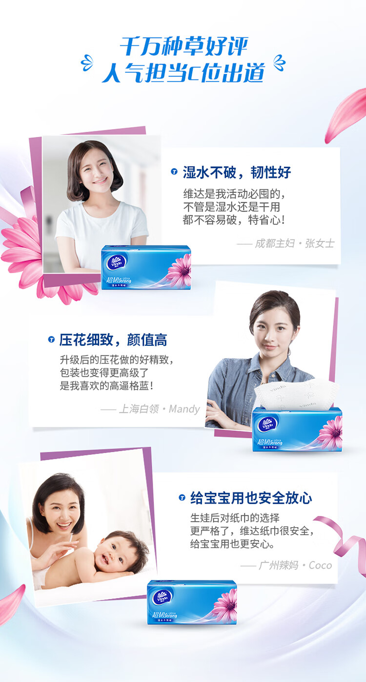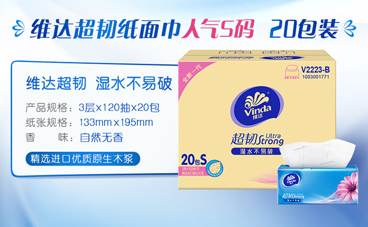 维达(Vinda)抽纸超韧3层120抽*20包 自然无香餐巾纸卫生纸巾整箱